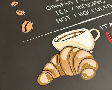 Dalla mia curiosità nel mondo della calligrafia è nata una nuova passione per l’arte del blackboard painting. Propongo soluzioni personalizzate per i locali dalle semplici lavagne menù alle pitture murarie, fondendo l’elemento decorativo con la funzionalità.